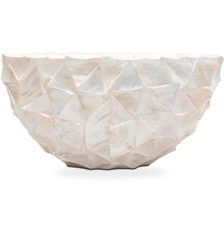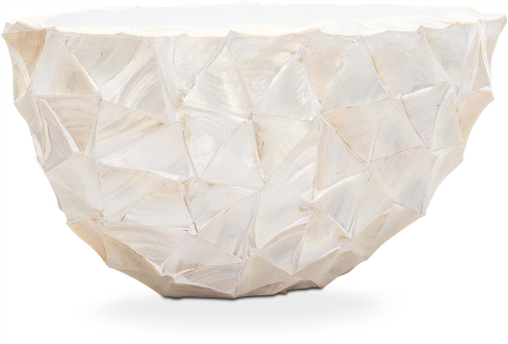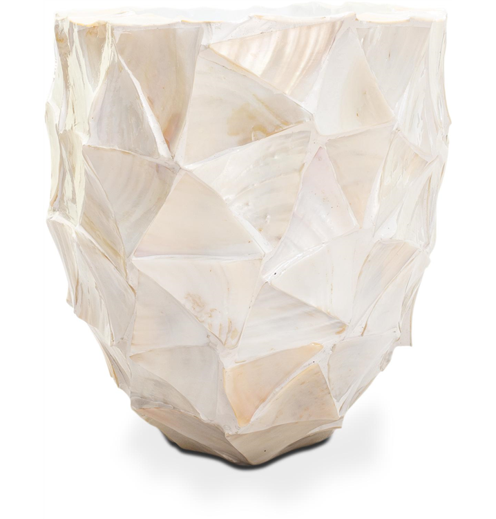 Echte, in Handarbeit aufgebrachte Muscheln machen die Produkte der Serie zu einem exklusiven und schimmerndem Highlight in jeder Dekoration. Mit großem Aufwand und in Präzision werden die dreieckigen Muschelstücke aus weißem Perlmutt auf den Korpus der Artikel aufgebracht, bevor sie verfugt und abschließend noch einmal überarbeitet werden. Zu der Serie gehören Pflanzgefäße, Schalen, Tischgefäße, Säulen und Orchideentöpfe und geben Ihnen somit die Möglichkeit, die Muschel-Gefäße als stimmungsvolles und exklusives Gesamtkonzept anzubieten.