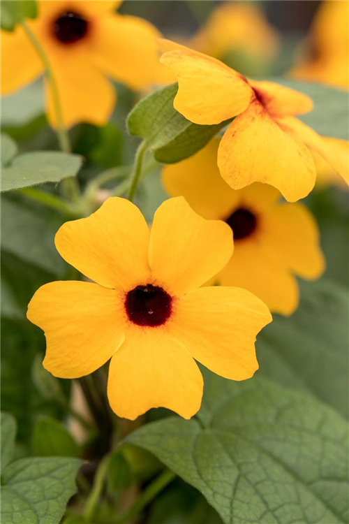 Die Blätter der Schwarzäugige Susanne 'Orange Divers' sind mittelgrün, herzförmig.