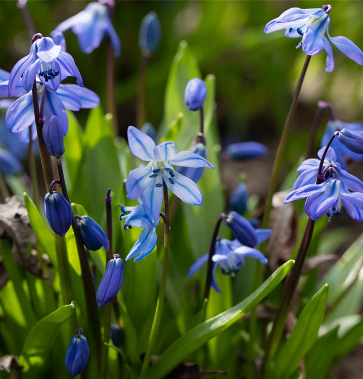 Zwischen März und April lässt der Sibirische Blaustern seine Blüten in Blau erstrahlen. Die Blüten sind sternförmig.