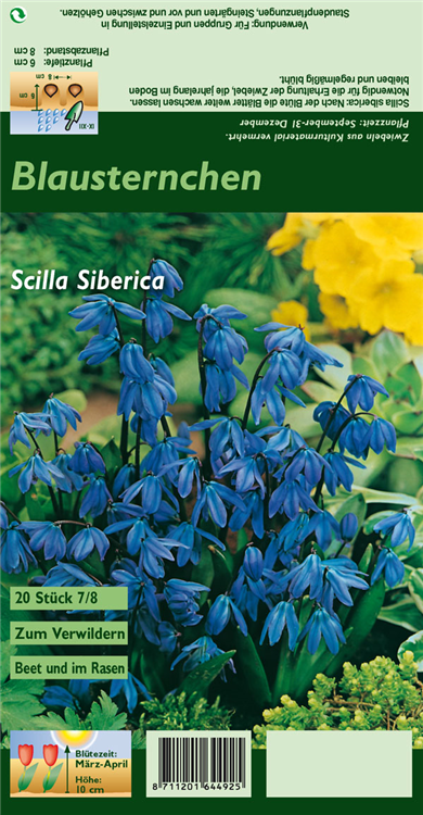 Welch eine Pracht, wenn der Sibirische Blaustern ab März seine herrlichen, blauen, sternförmigen Blüten hervorbringt! Über den dunkelgrünen, lanzettlichen Blättern kommen die Blüten besonders gut zur Geltung. Wird Scilla siberica an einen sonnigen bis schattigen Standort mit durchlässigem Boden gepflanzt, entwickelt er sich besonders gut. Er wächst aufrecht und erreicht Größen von 8 cm bis 10 cm bei einer Breite von 6 cm bis 8 cm. Sehr dekorativ macht sich der Sibirische Blaustern auch in Kübeln oder Kästen.