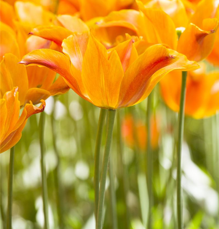 Zwischen April und Mai lässt die Lilienblütige Tulpe 'Ballerina' ihre Blüten in Orange erstrahlen und ihren angenehmen Duft verbreiten.