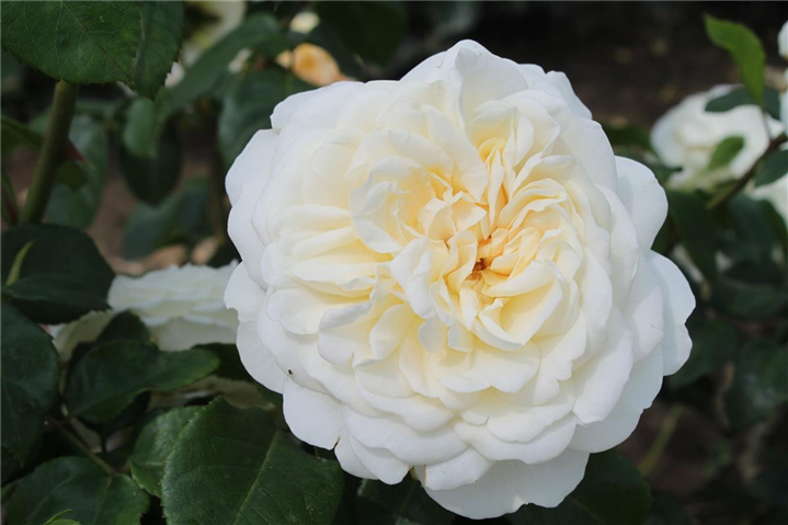 Die Strauchrose 'Tranquillity'® (Rosa) ist eine reichblühende Rose, die im Garten eine besondere Rolle spielt. Die zahlreichen starkgefüllten Blüten sind weiß und erscheinen von Juni bis Oktober. Ihr wunderbarer Duft entfaltet sich besonders an sonnigen, warmen Tagen. Mit den richtigen Begleitern an ihrer Seite, kommt die Königin der Blumen besonders gut zur Geltung. Niedrige Stauden, Lavendel und Salbei eignen sich ganz gut für diese Zwecke.