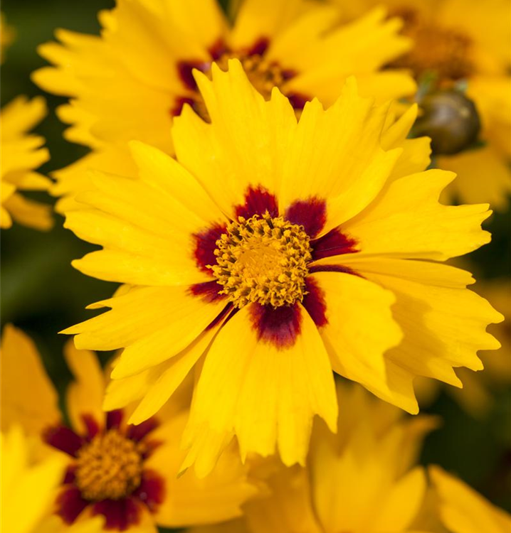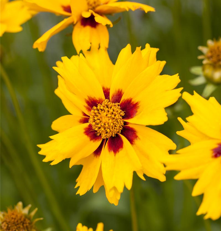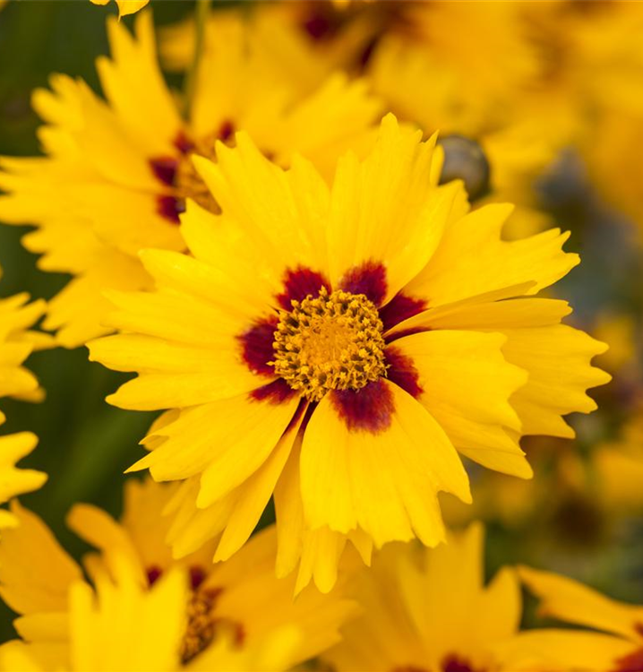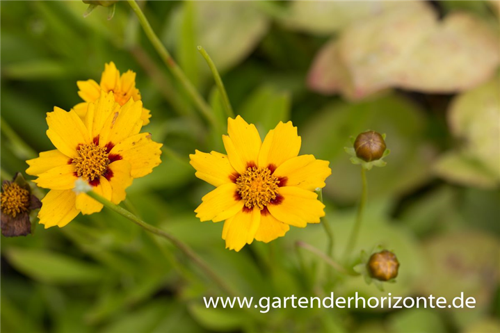 Coreopsis lanceolata 'Sterntaler' bildet körbchenartige, gelbe Blüten ab Juli.