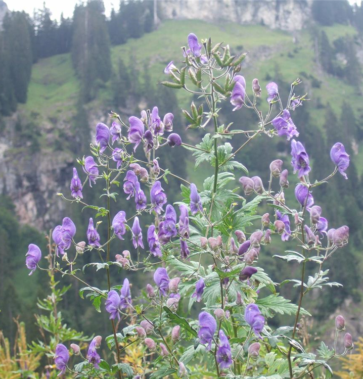 Aconitum napellus wird den stark giftigen Pflanzen zugeordnet.