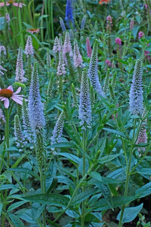 Der Langblättrige Garten-Ehrenpreis 'First Memory' (Veronica longifolia) ist eine buschige, aufrechte Staude, die von Juni bis Juli lilafarbene, rachenförmige, in Trauben angeordnete Blüten bildet. An einem sonnigen Standort mit durchlässigem, humosem, nährstoffreichem Boden erreicht er gewöhnlich eine Höhe von ca. 60 cm und wird ca. 60 cm breit. Der Langblättrige Garten-Ehrenpreis 'First Memory' ist gut frostverträglich.