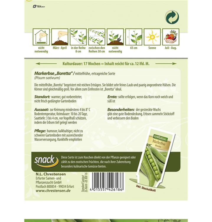 Die Markerbse 'Boretta' ist im Gemüsegarten, aber auch zum Kochen, für Salat oder für Suppen & Eintöpfe sehr beliebt.