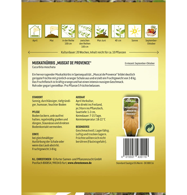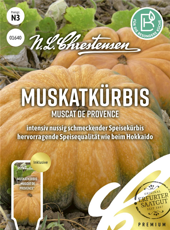 Der Moschus-Kürbis 'Muscat de Provence' ist im Gemüsegarten, aber auch für Marmeladen & Gelee, zum Backen, zum Kochen, für Süßspeisen, zur Dekoration oder zum Verzehr sehr beliebt.